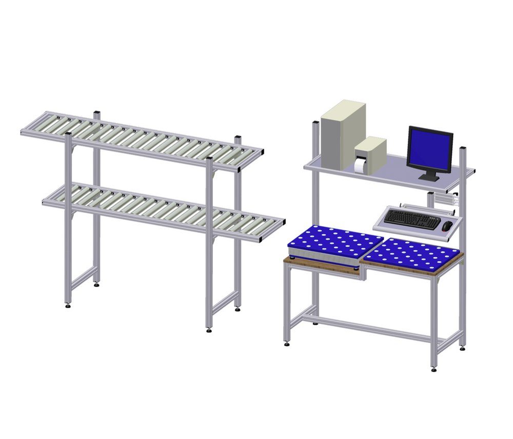 Tischoberfläche bestehend aus einer festen Kugelplatte sowie einer Wage mit Kugelplatte,