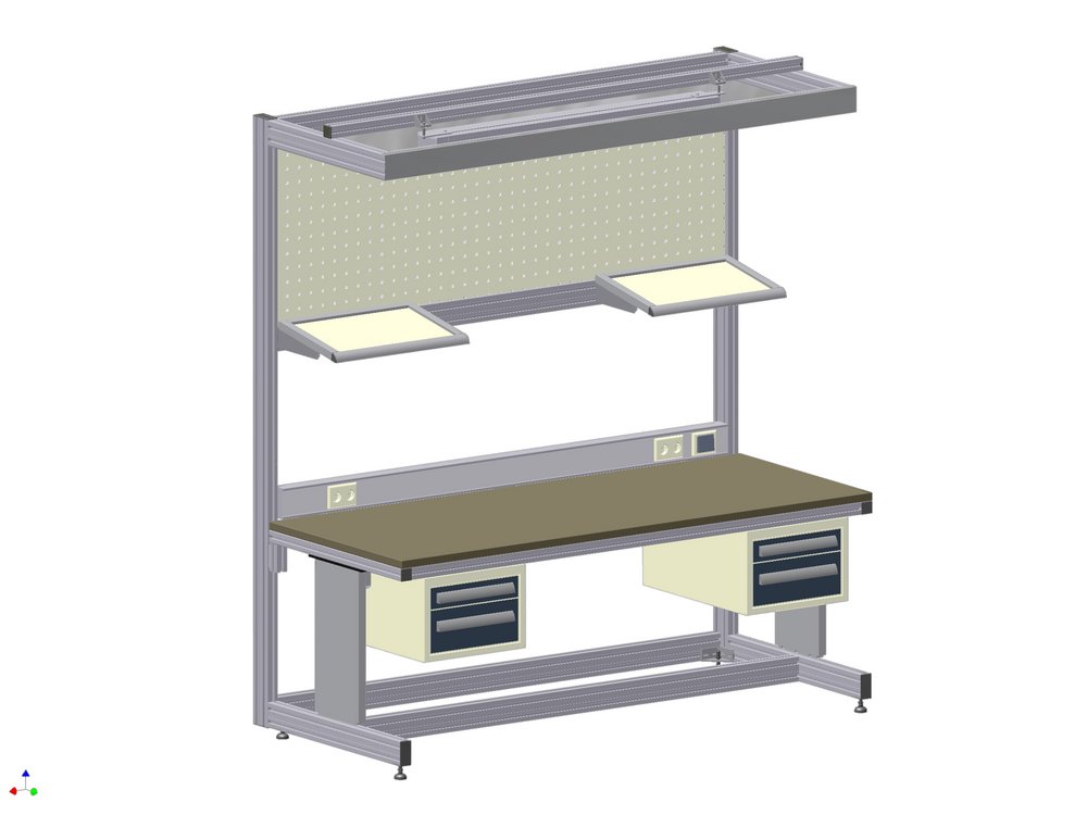 | LED-Beleuchtung, schwenkbare Ablagen, Steckdosenleisten, Schaltschrank mit Hauptschalter, Schubladenblöcke |
