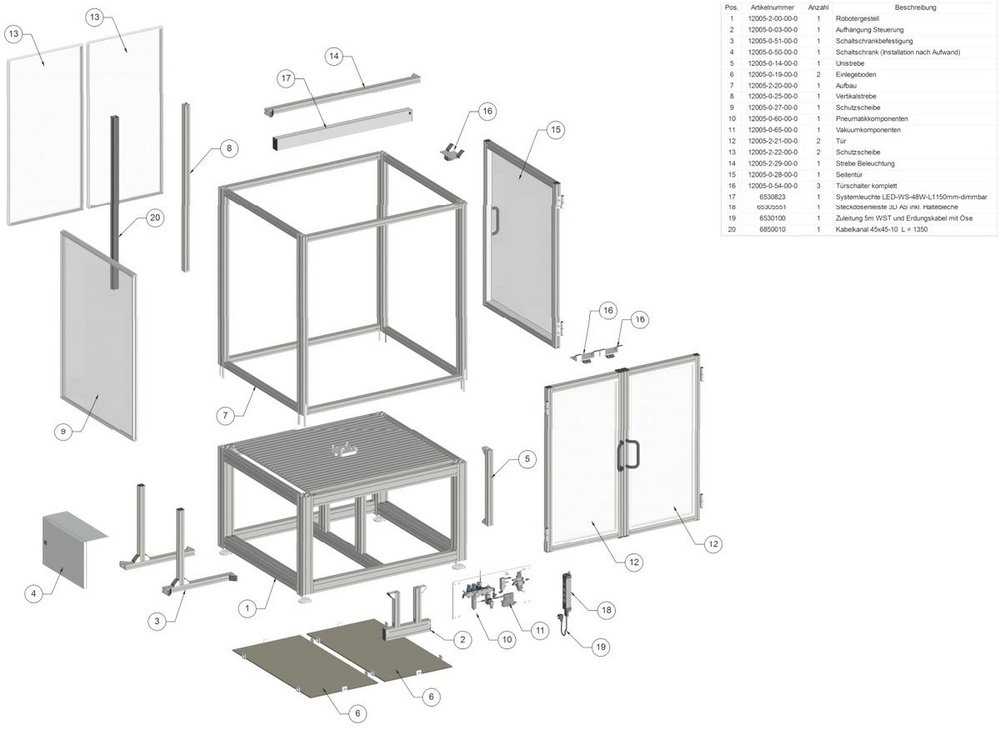 Die Baugrößen der Roboterzellen/-tische sind modular aufgebaut und können beliebig kombiniert werden.